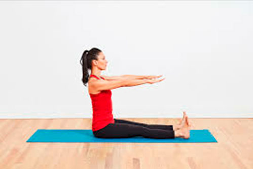 - Sentados sobre isquiones, con piernas extendidas y pies en flexión. Brazos a 90º.